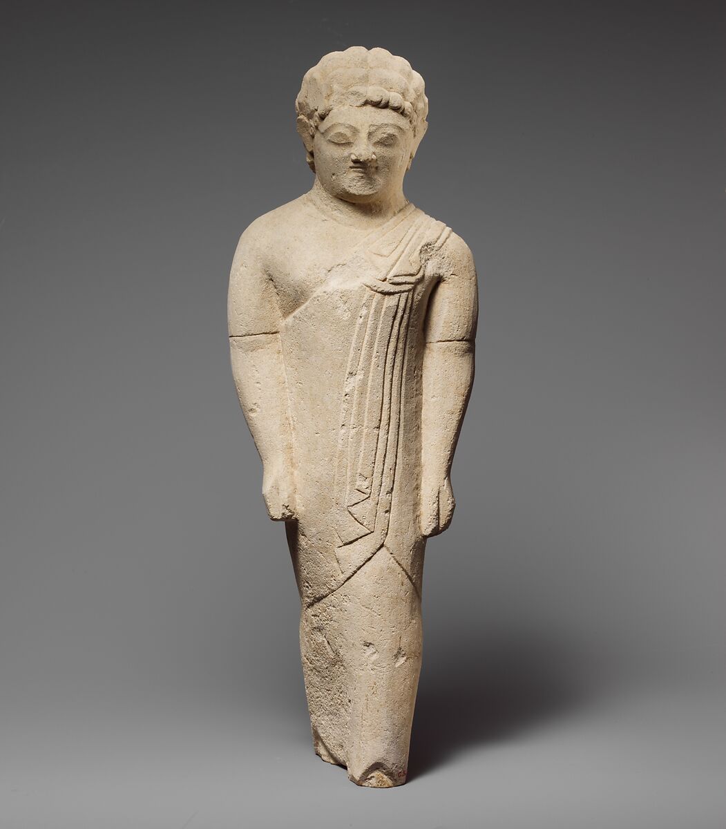 • Title: Limestone statuette of a beardless male votary in Greek dress