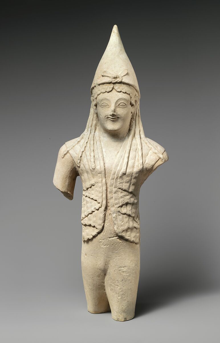 - Title:Limestone statuette of a youthful votary wearing a pointed cap