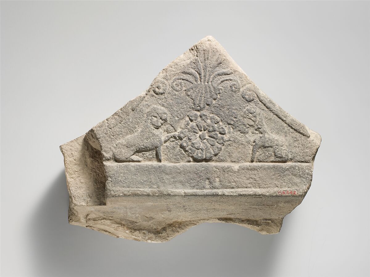 - Title: Limestone finial of a funerary stele