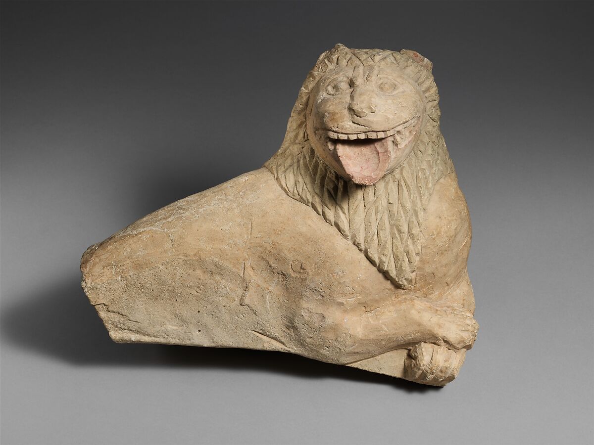 - Title: Fragment of a limestone funerary stele with a recumbent lion