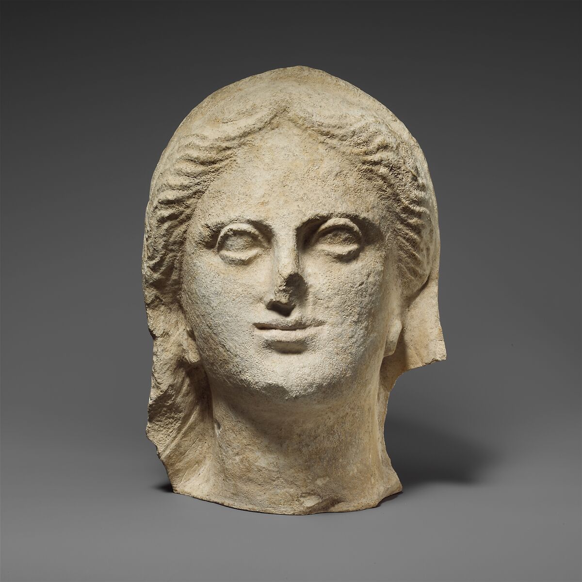 - Title:Limestone head of a veiled female votary