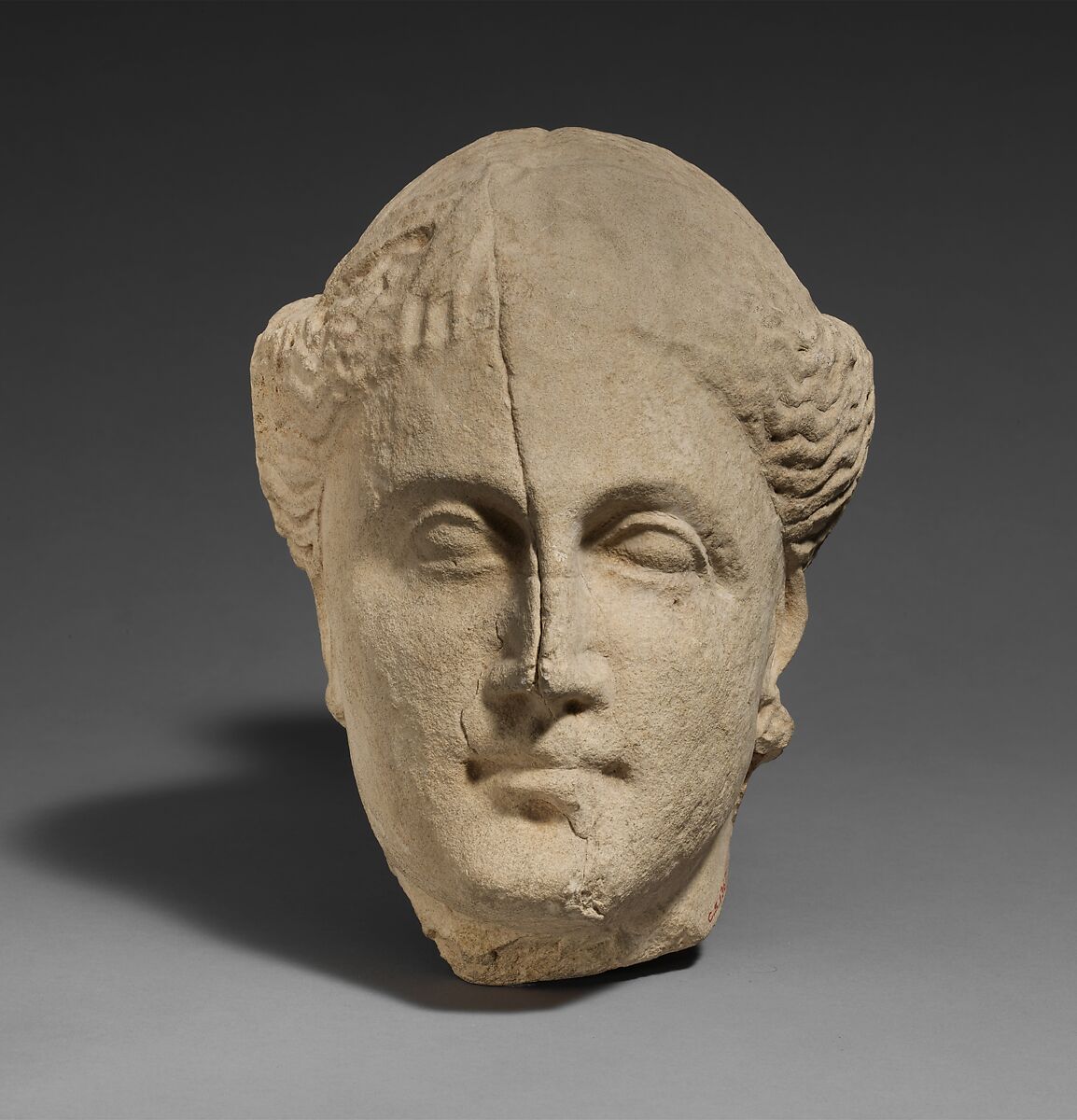 - Title:Limestone head of a female votary