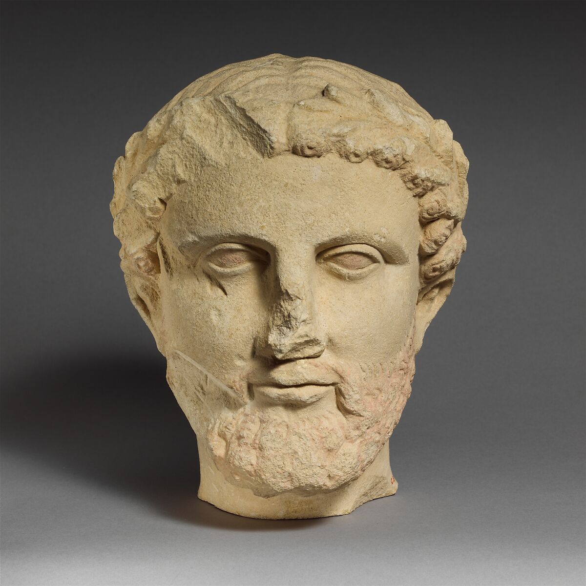 - Title: Limestone bearded head with a wreath of leaves