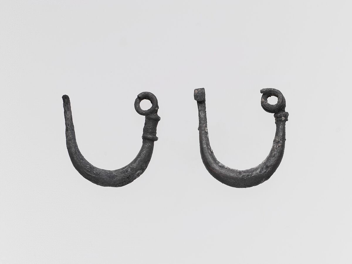 The shape of the fibulae is noteworthy for its U-shaped bow. Both examples lack their pins.