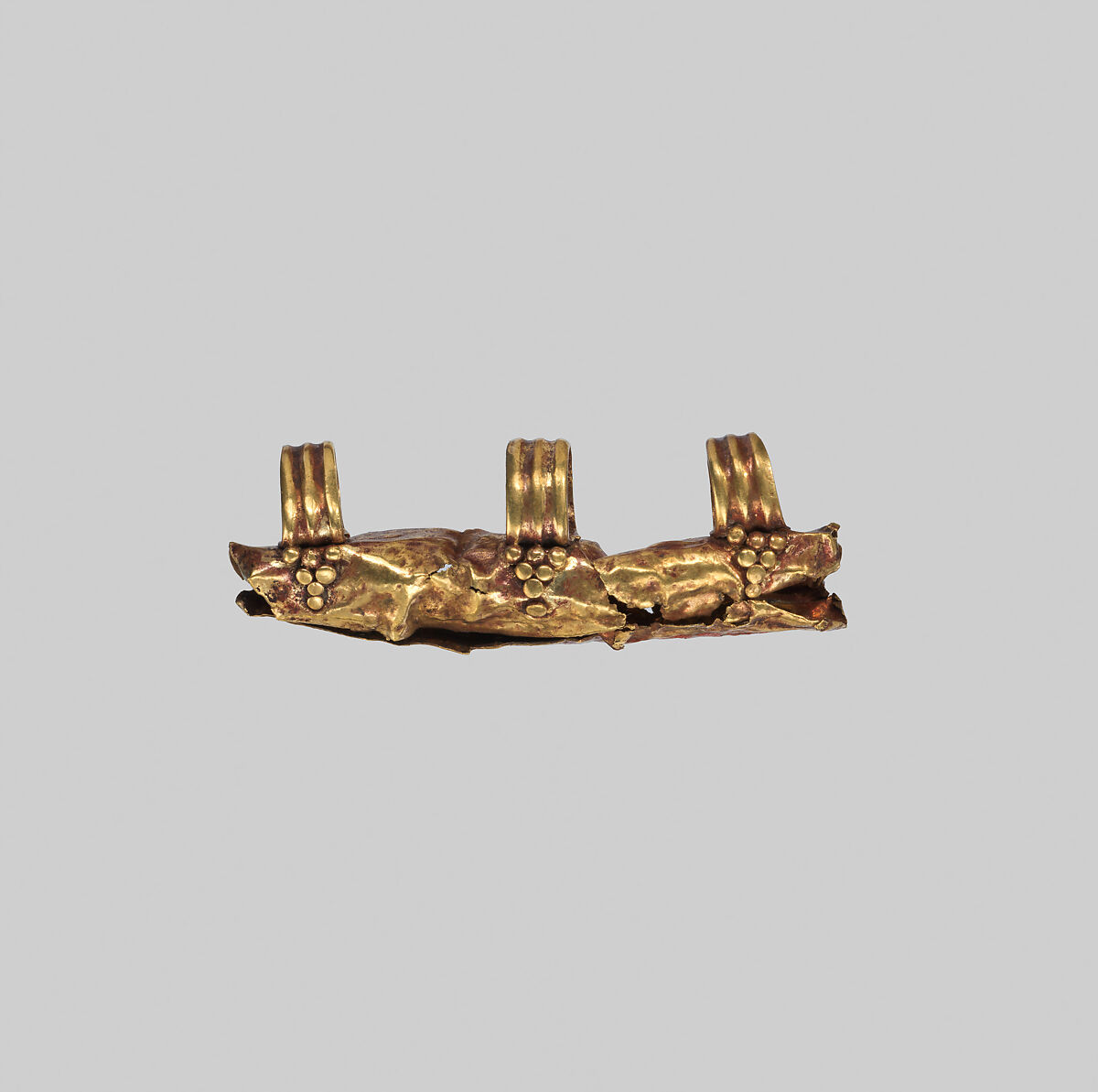 Such tubular cases were used as pendants strung on necklaces. They contained spells written on thin sheets of gold or papyrus and were intended to protect the wearer against evil. The practice originated in Egypt but was later very popular with the Phoenicians, from whom it is likely that it was passed on not only to Carthage but also to Cyprus. Amulet cases continued to be made well into Roman times and may be seen as the prototype for Islamic amulets.
