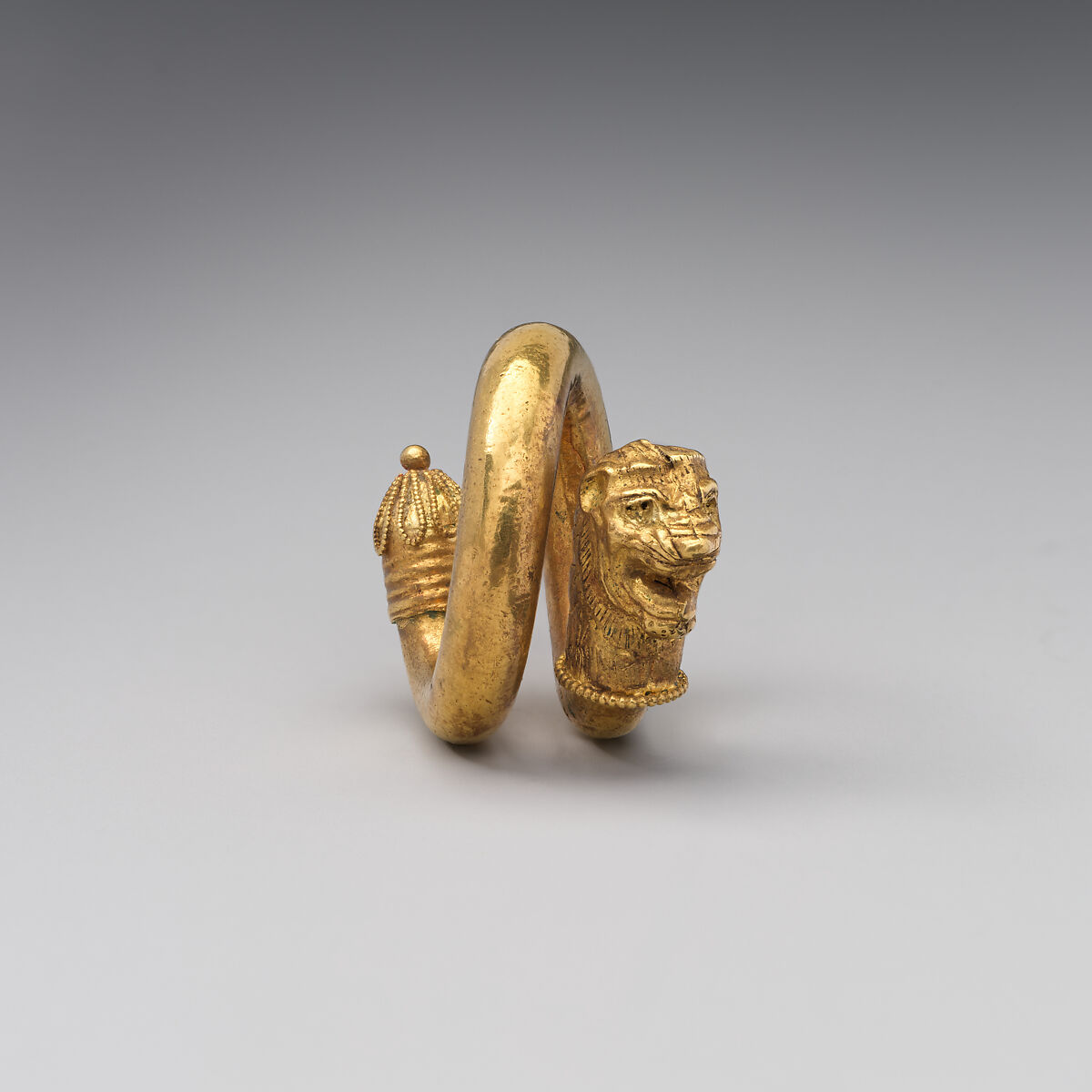 - Title: Gold and copper alloy spiral with lion-head terminal