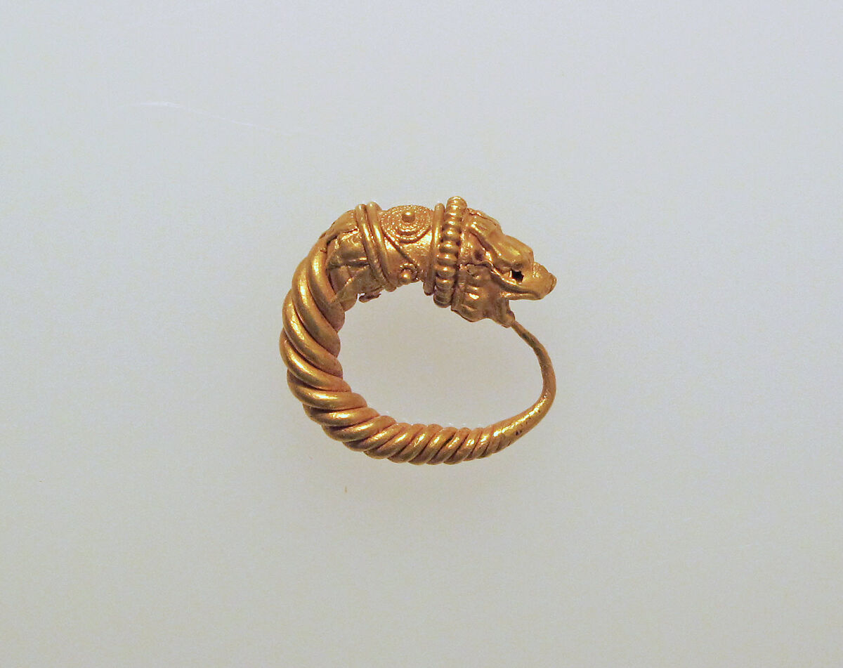 - Title: Gold earring with head of a lion
