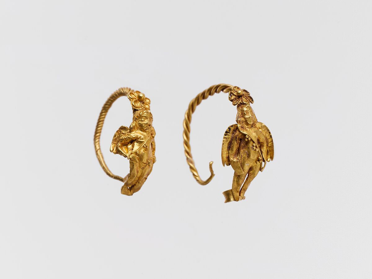 - Title: Gold earring with winged figure