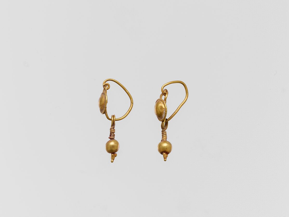 - Title:Gold earring with disc and pendant