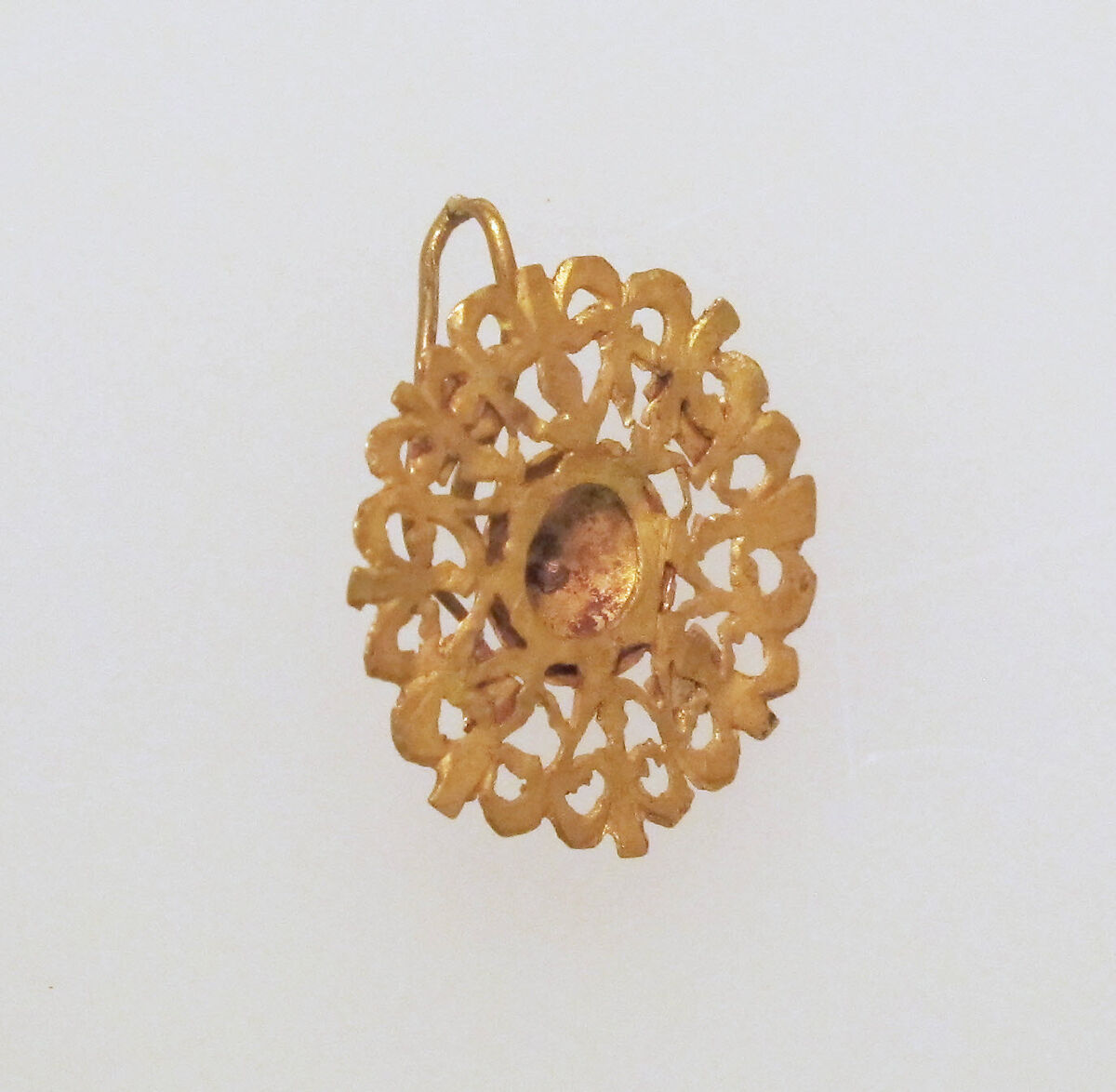 The rosette is formed by eight overlapping peltae. The central pearl or stone is missing.