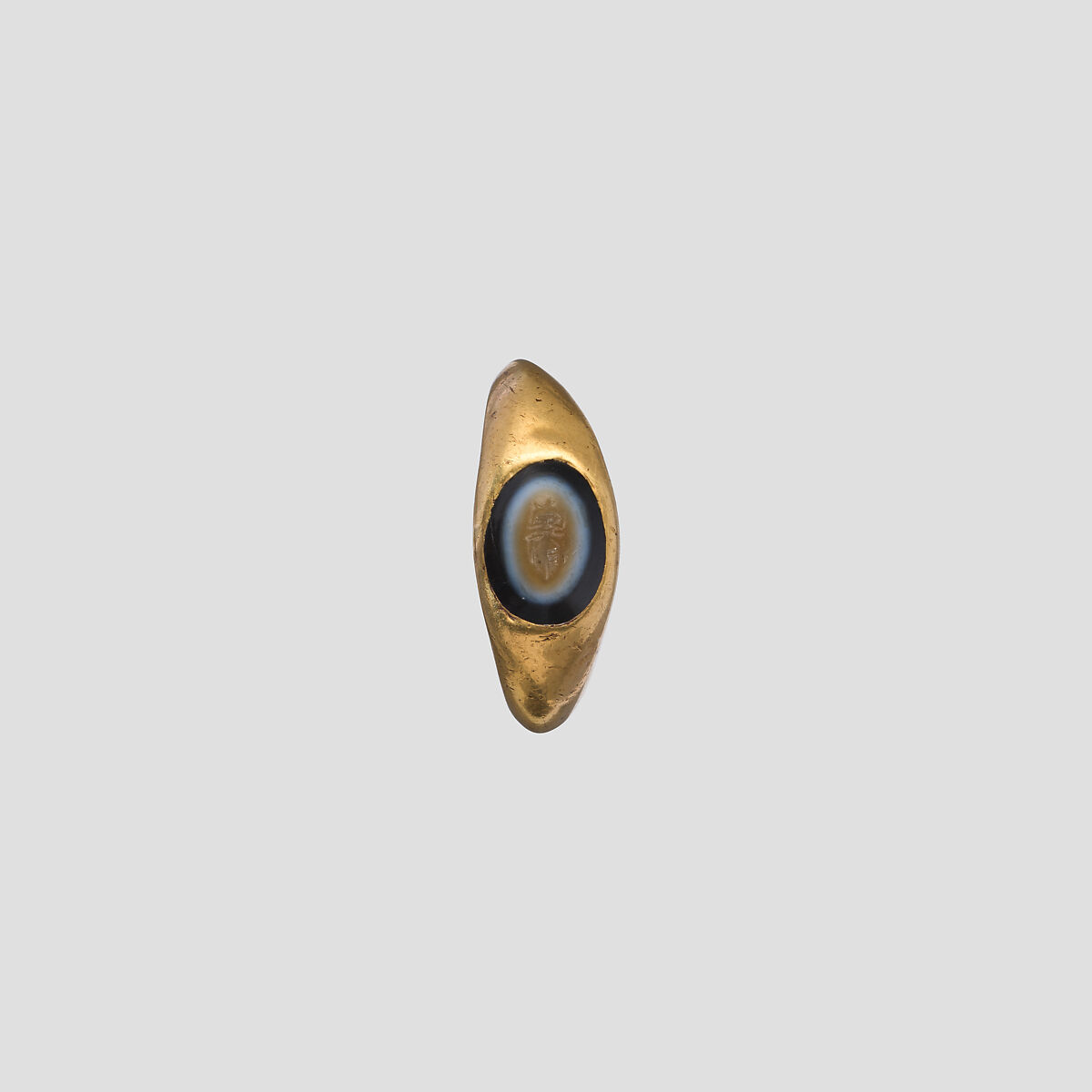 Set in a plain gold ring; on the stone is an ant carved in intaglio.