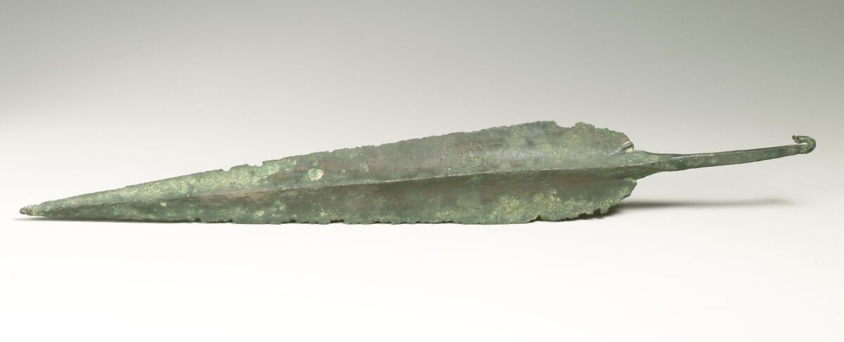 Leaf-shaped blade with a hooked tang.