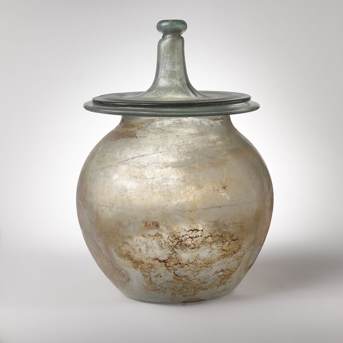 - Title: Glass cinerary urn with lid