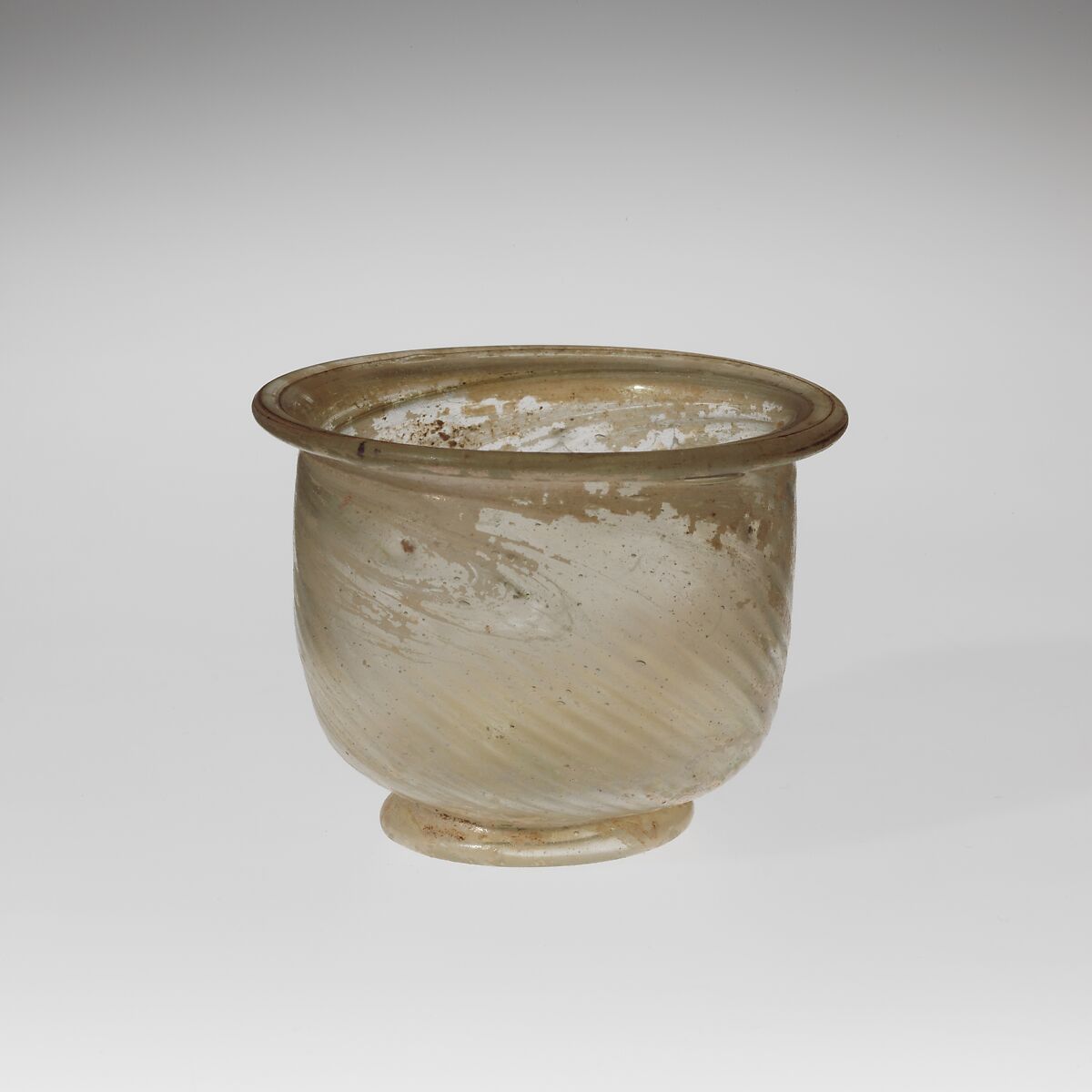 The cup is said to have been found in a Roman tomb at the ancient site of Caesaromagus in 1863, together with two glass jugs (81.10.168-169) and a coin of the Gallic emperor Postumus, which was minted between A.D. 260 and 268.