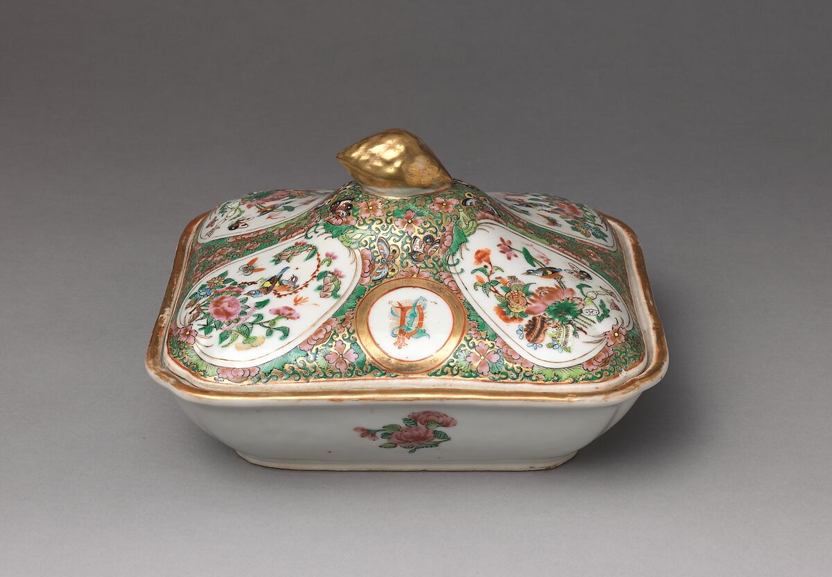 A Providence, Rhode Island merchant, Daniel Paine, ordered this dinner service for his wife, Louisa Paine, in the early nineteenth century. Her initials decorate the cups, saucers, dishes, plates, platters and tureens that compose the service.