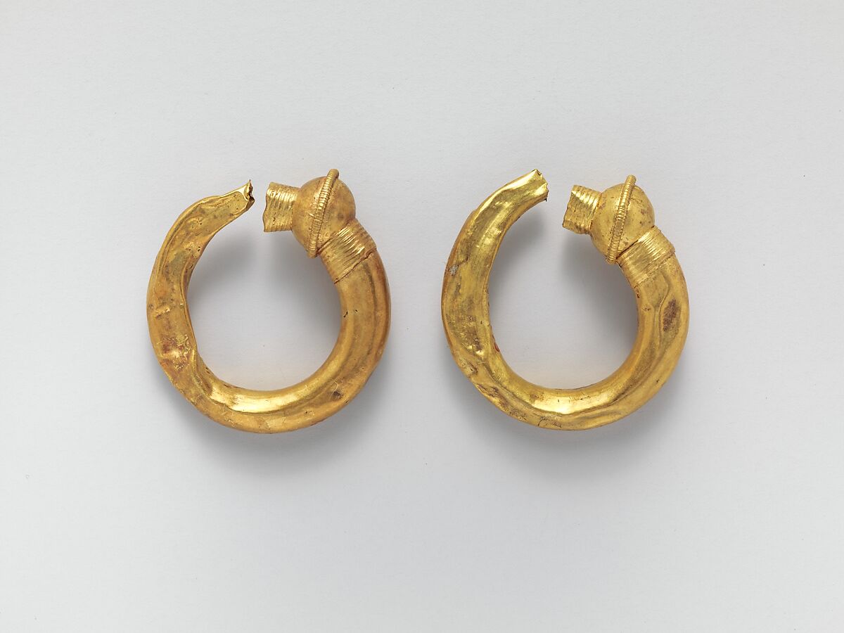 - Title: Gold trumpet-shaped earrings