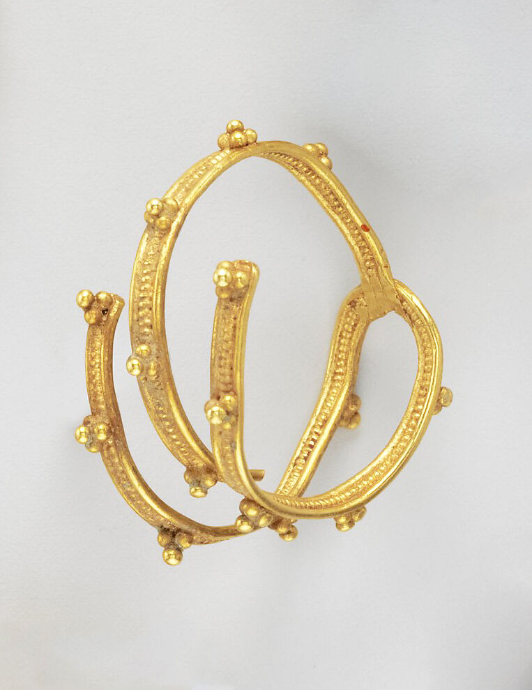 Ornamented with beading and groups of granules.