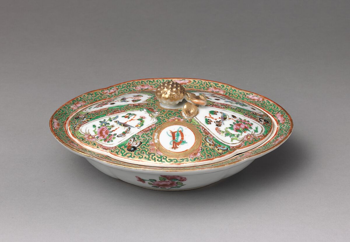 A Providence, Rhode Island merchant, Daniel Paine, ordered this dinner service for his wife, Louisa Paine, in the early nineteenth century. Her initials decorate the cups, saucers, dishes, plates, platters and tureens that compose the service.