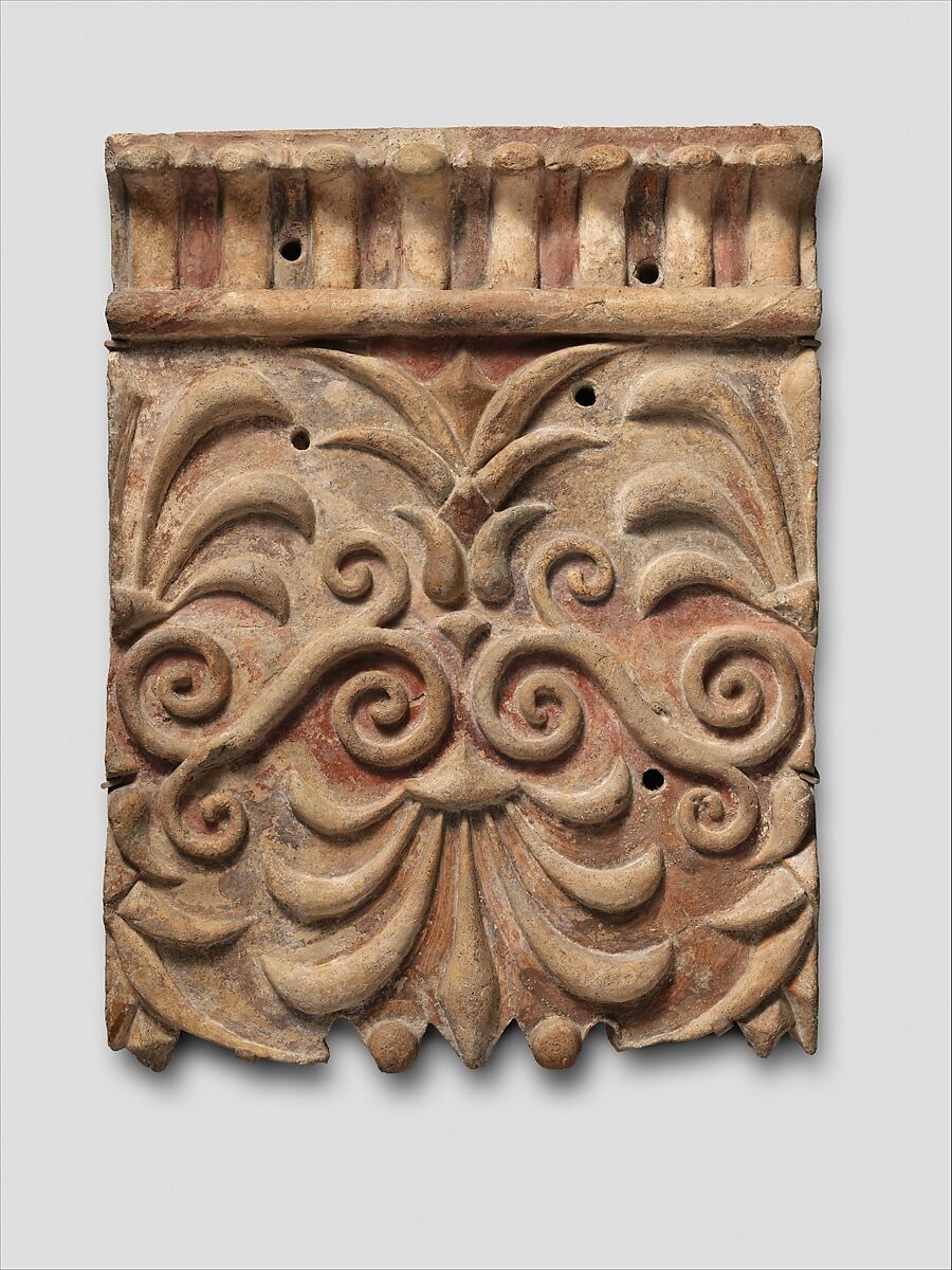 - Title: Terracotta architectural plaque with lotus and palmette designs