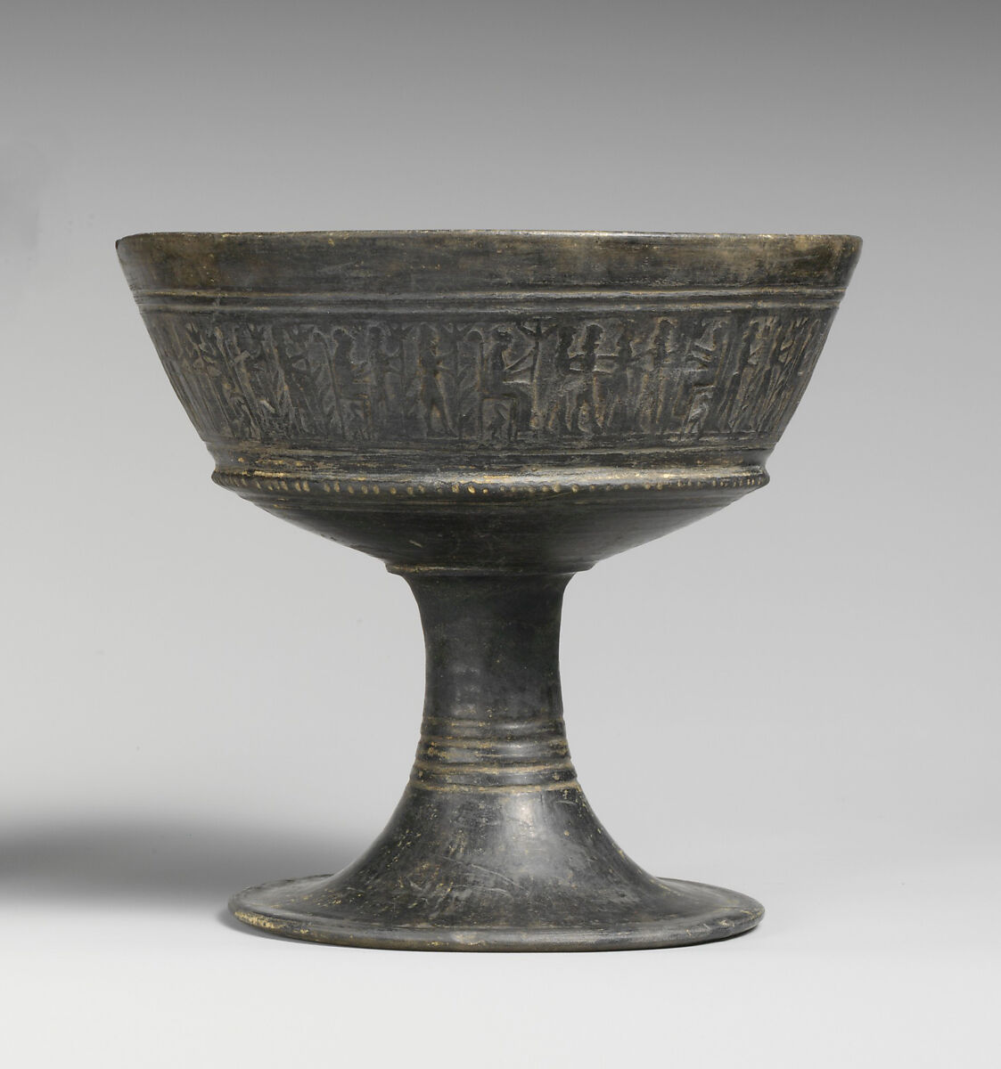 On high foot, with stamped design of eight human figures, five-and-one-half times repeated.