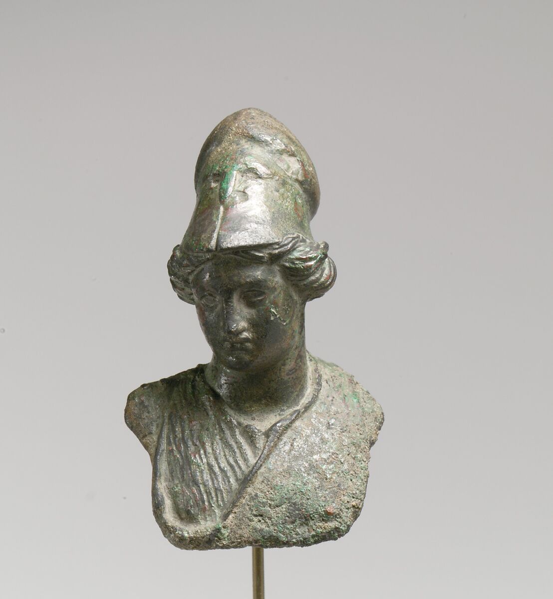 Modeled on the Greek goddess Athena, the Roman Minerva had many of the same duties and attributes, as shown here by her Greek-style helmet. Together with Jupiter and Juno, she formed part of the Capitoline Triad, the very center and focus of Roman state religion.