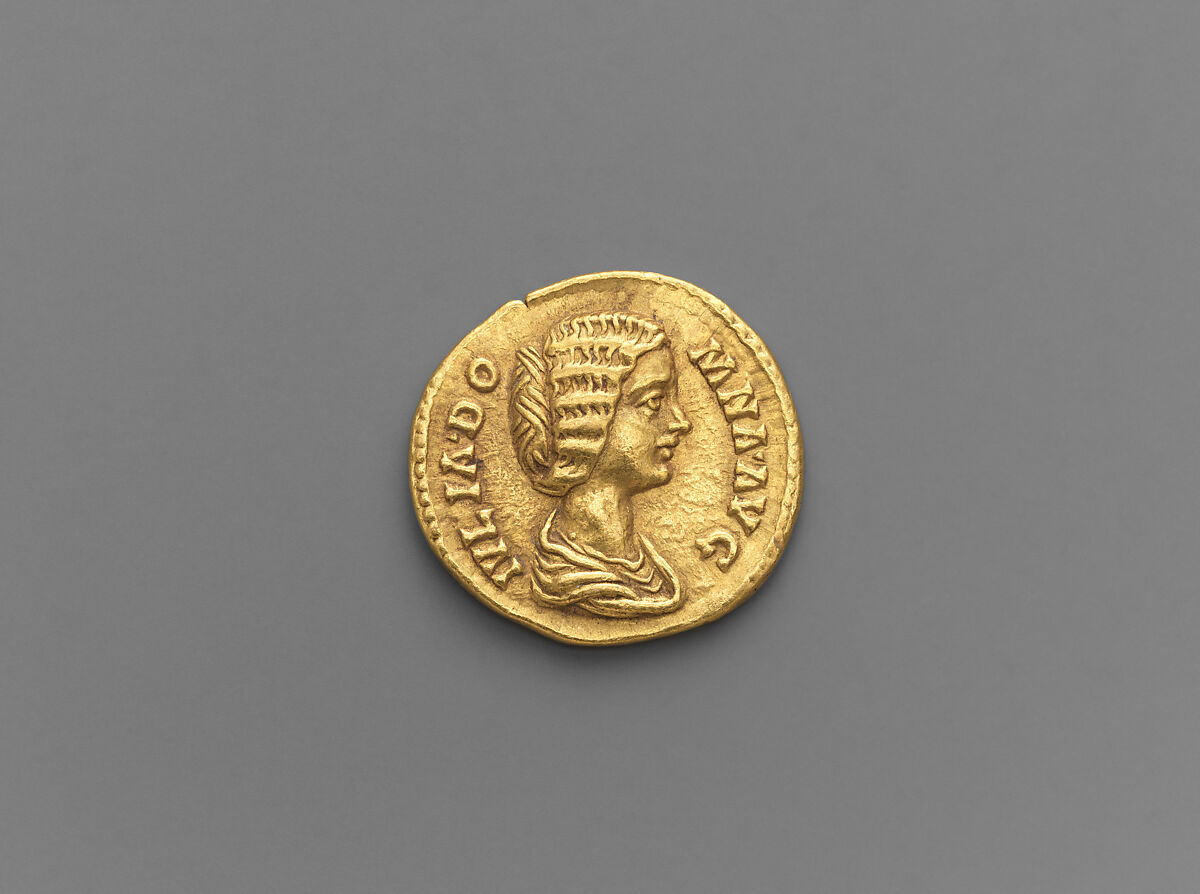 IVLIA DOMNA AVG, bust of Julia Domna, wife of Septimius Severus/VENVS GENETRIX, Venus seated on throne with Cupid at her feet
