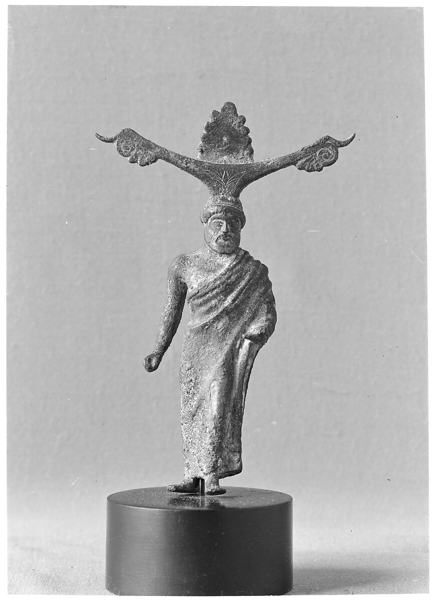 Bronze mirror supports in the form of male figures are rare, especially from mainland Greece.