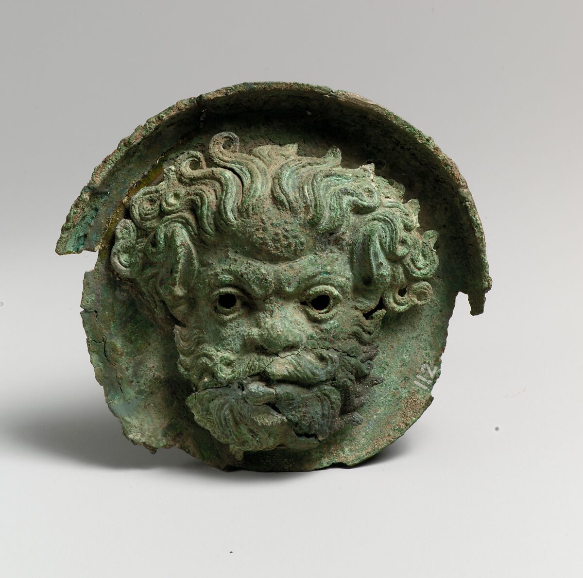- Title:Silvered bronze roundel with satyr head (one of a pair)
