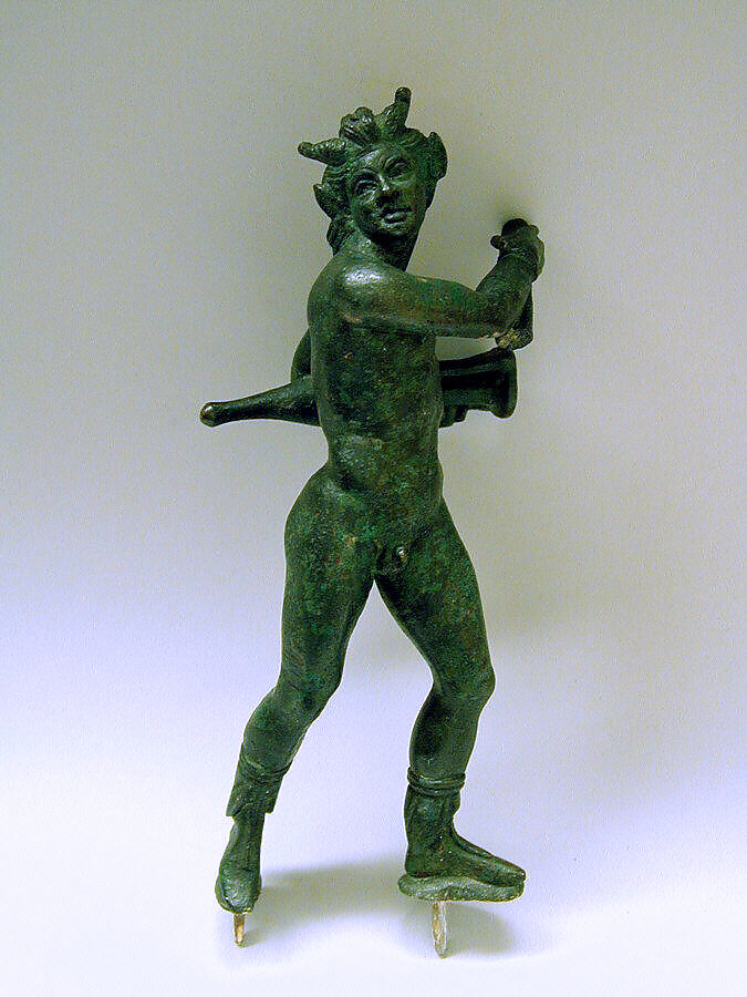 - Title: Bronze statuette of a satyr with an amphora