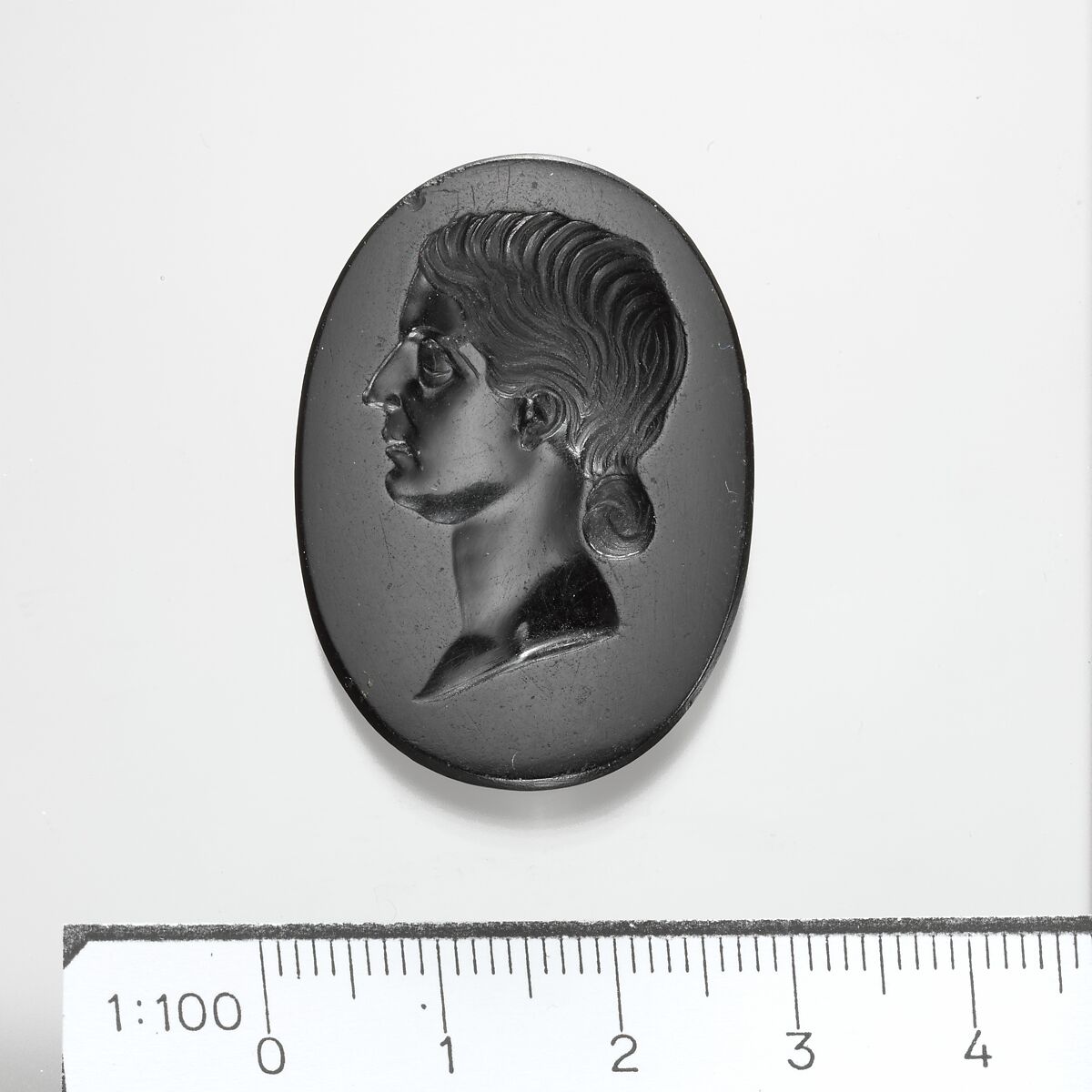- Title: Black jasper intaglio portrait of a Roman lady