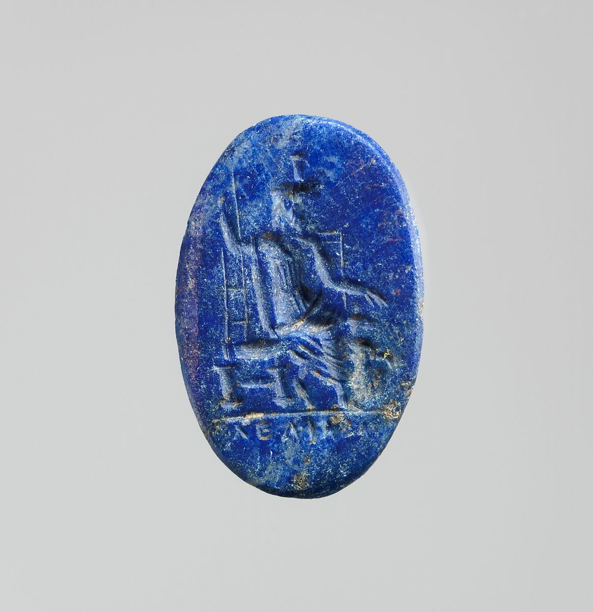 - Title:Lapis lazuli intaglio: Serapis enthroned