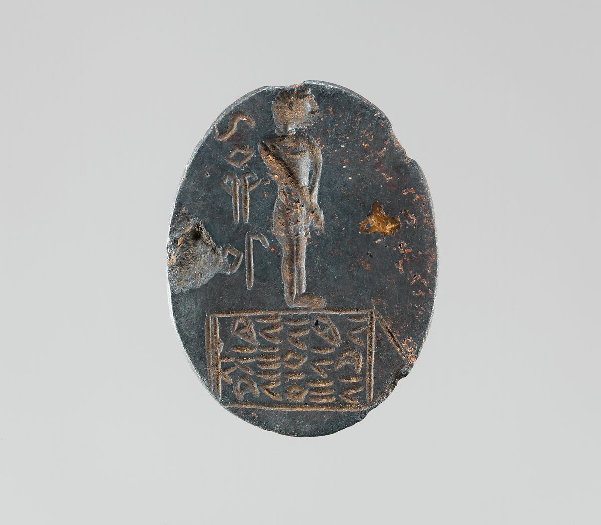 - Title: Haematite intaglio: Youth on inscribed stele