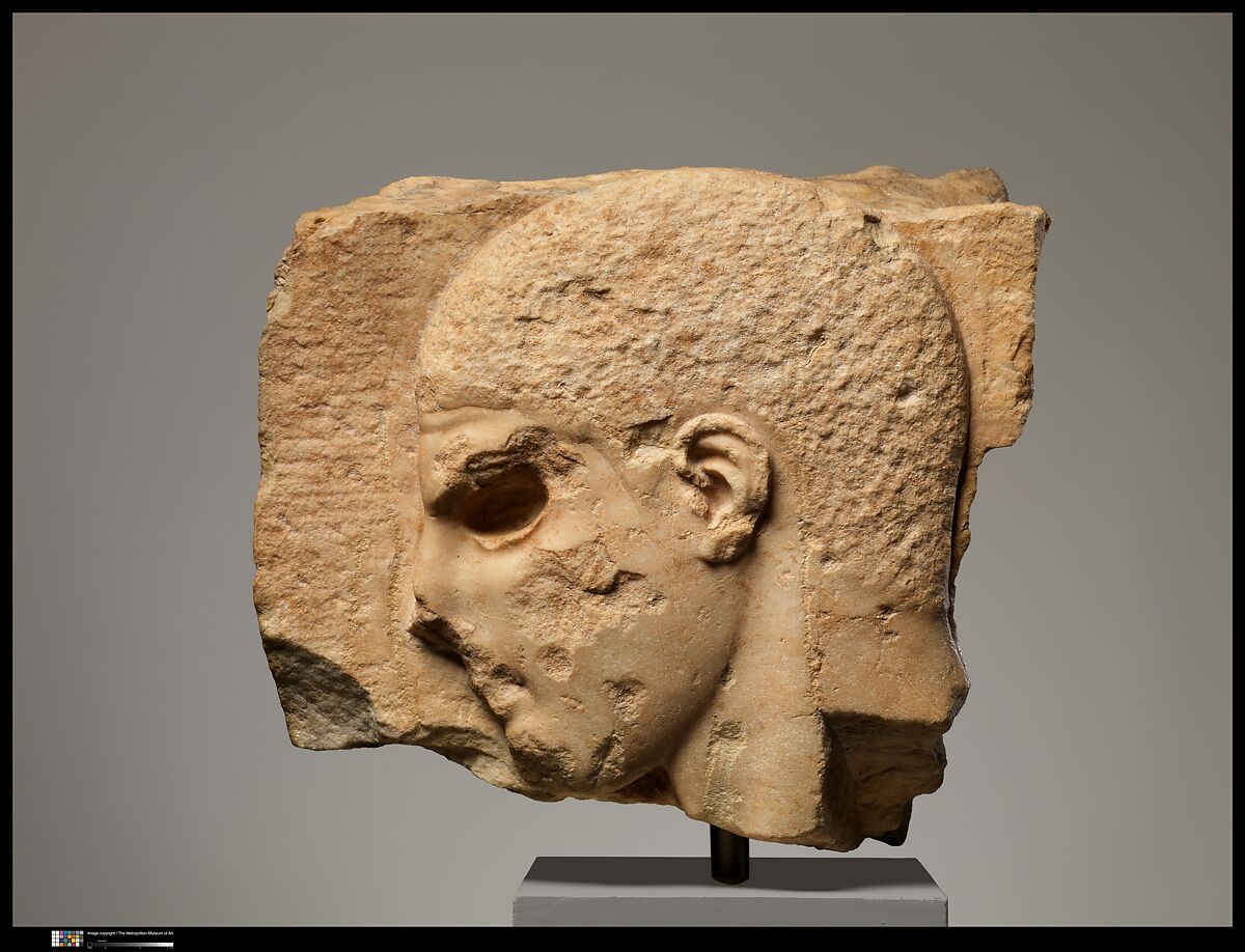 - Title: Fragment of a marble grave stele with the head of a youth