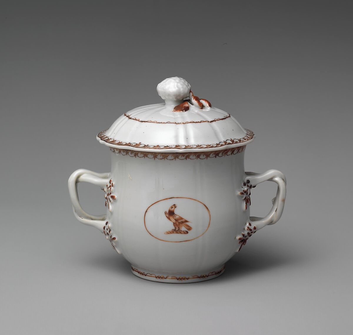 This covered sugar bowl features the same bald eagle decoration as 42.149.2.