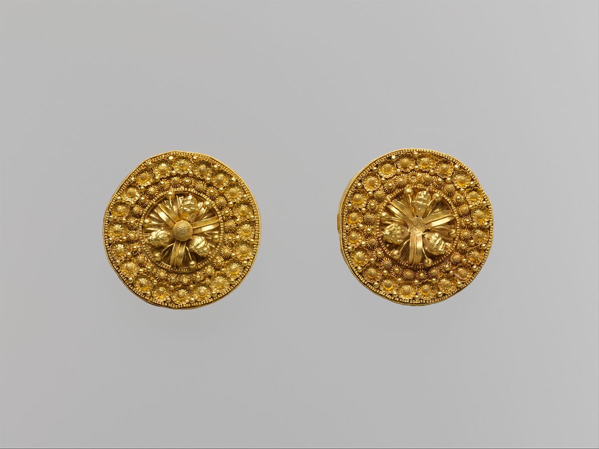 - Title: Gold disks with floral motifs and lions' heads