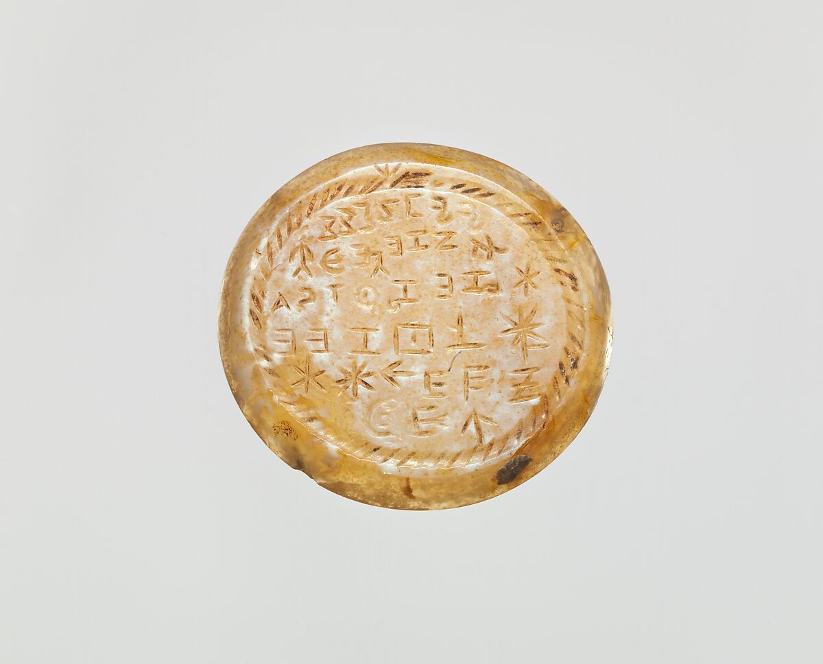 - Title: Onyx intaglio: Incantation in Greek letters