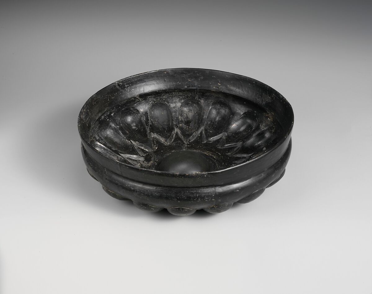 The shape is rare in bucchero. This example seems to be a literal translation from the more common metallic versions ultimately derived from Near Eastern prototypes.