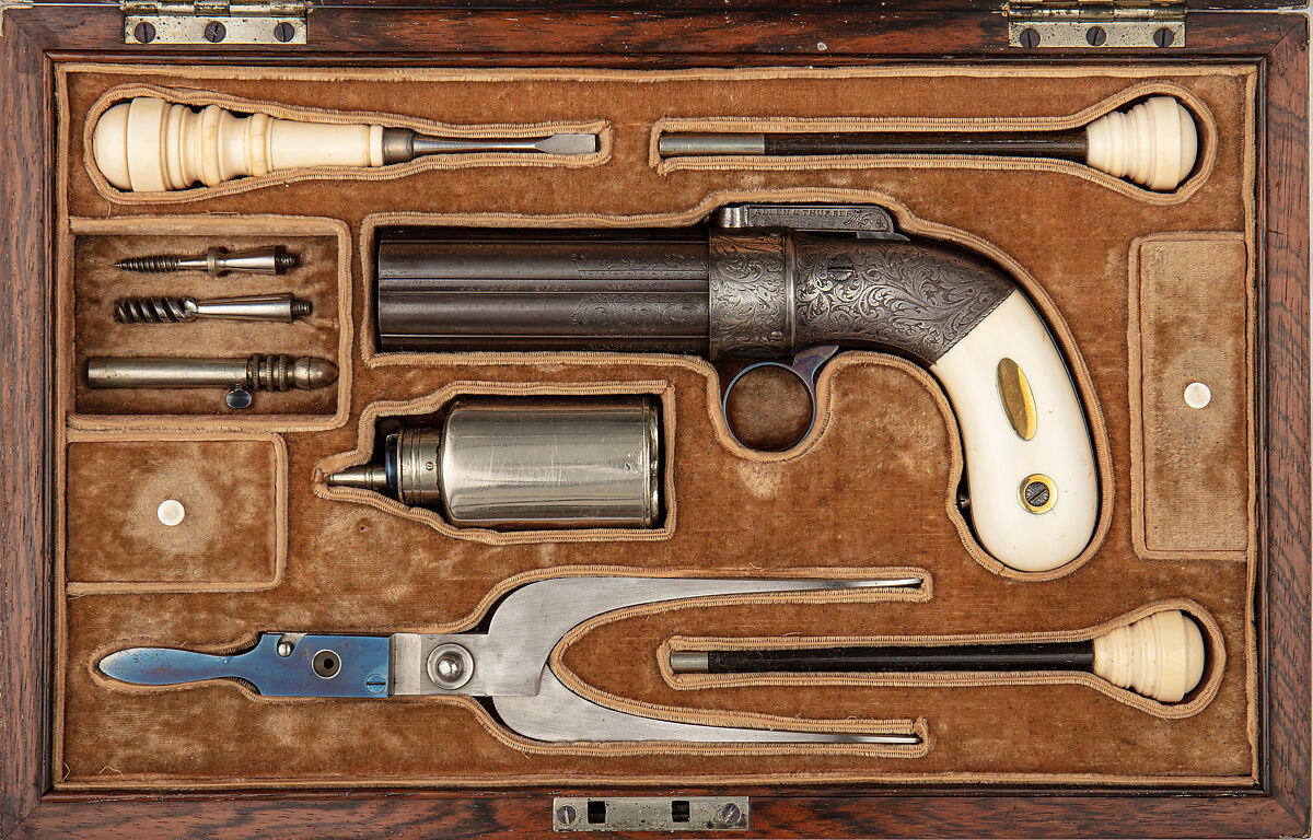 - Title: Cased Six-Barreled Revolving Percussion Pistol ("Pepperbox")