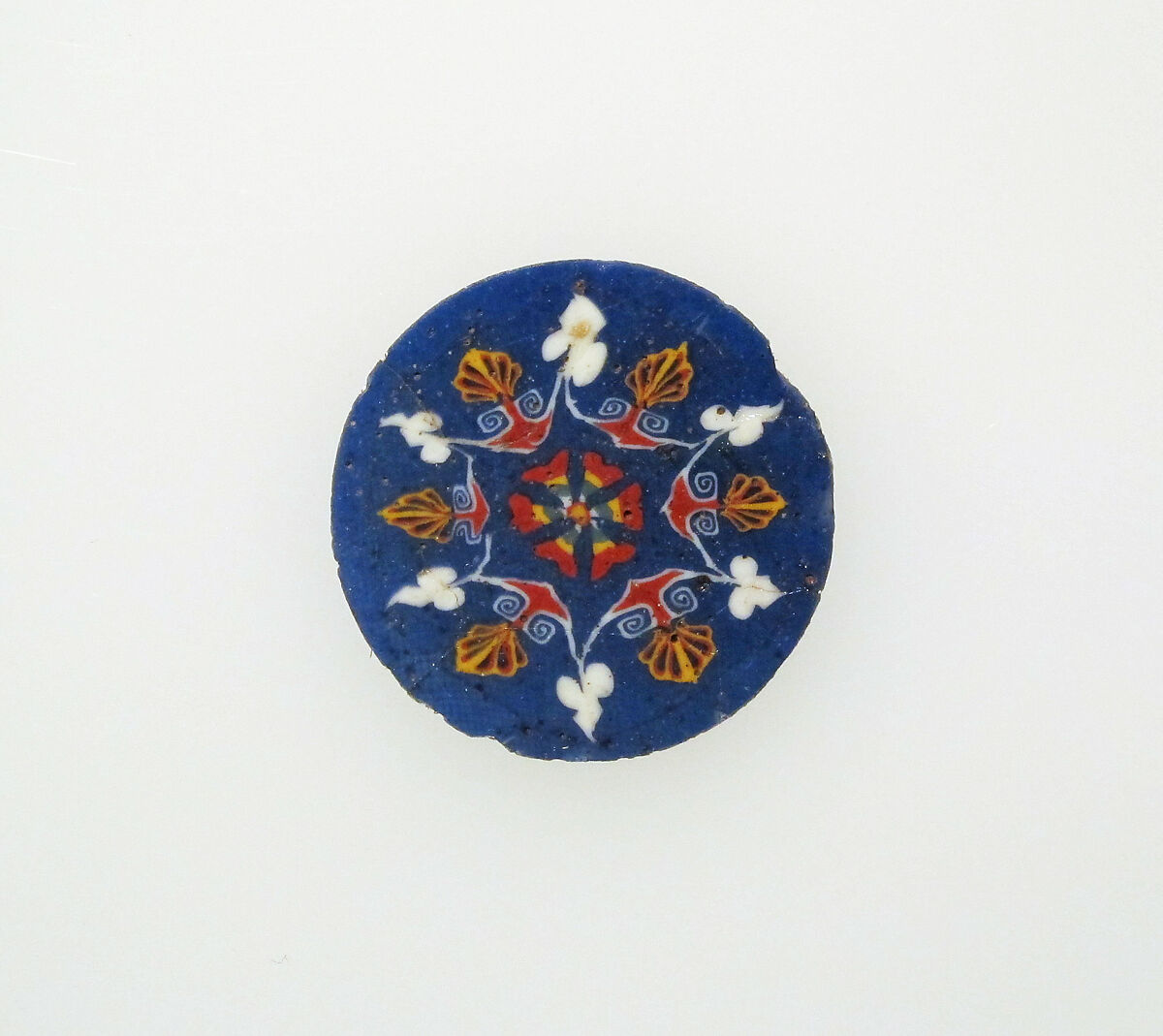 These inlays, despite their different shapes and colors, all have the same basic pattern, comprising palmettes and lilies or lotus flowers. Although probably of Egyptian origin, such inlays were popular in Rome, and similar designs are found in Roman decorative arts.