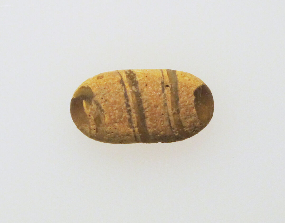 Colorless and opaque yellow lozenge shaped millefiori pinhead.