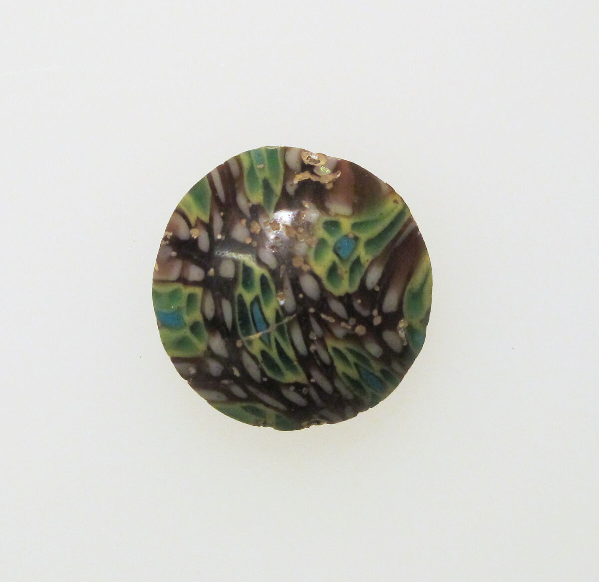 Round, multi colored millefiori pinhead.