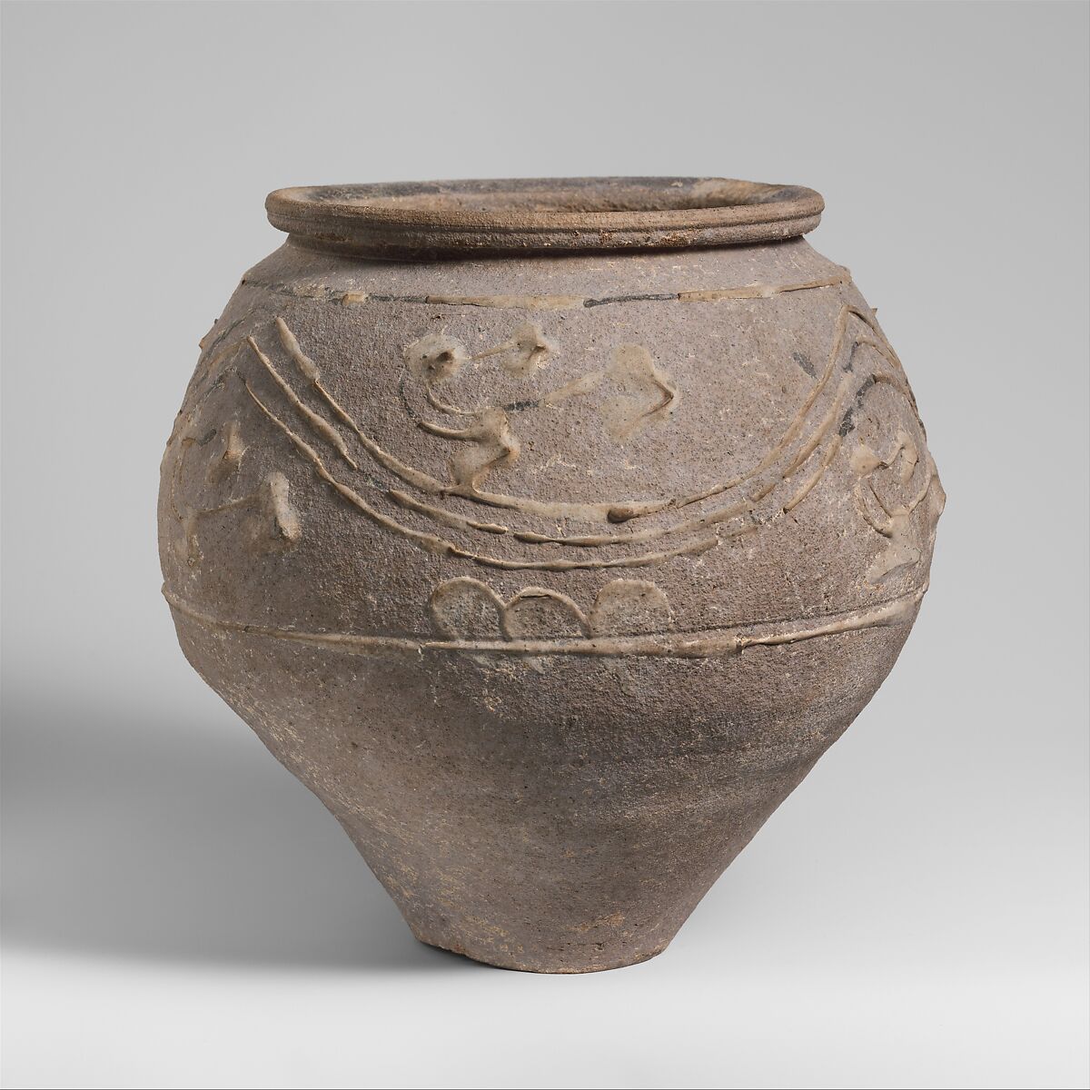 - Title:Terracotta jar with barbotine decoration