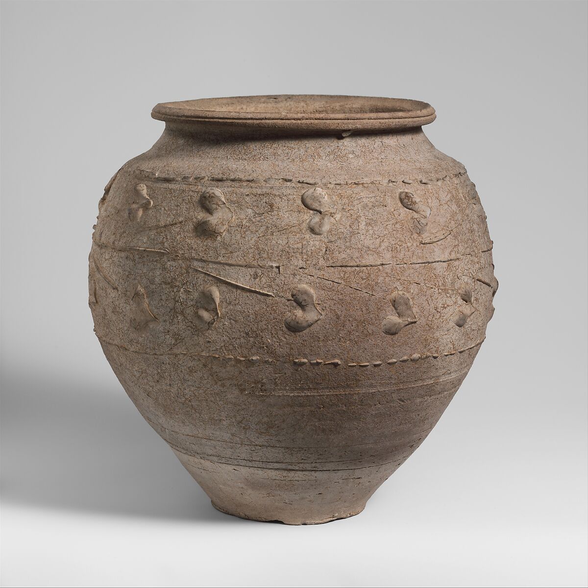 - Title:Terracotta jar with barbotine decoration