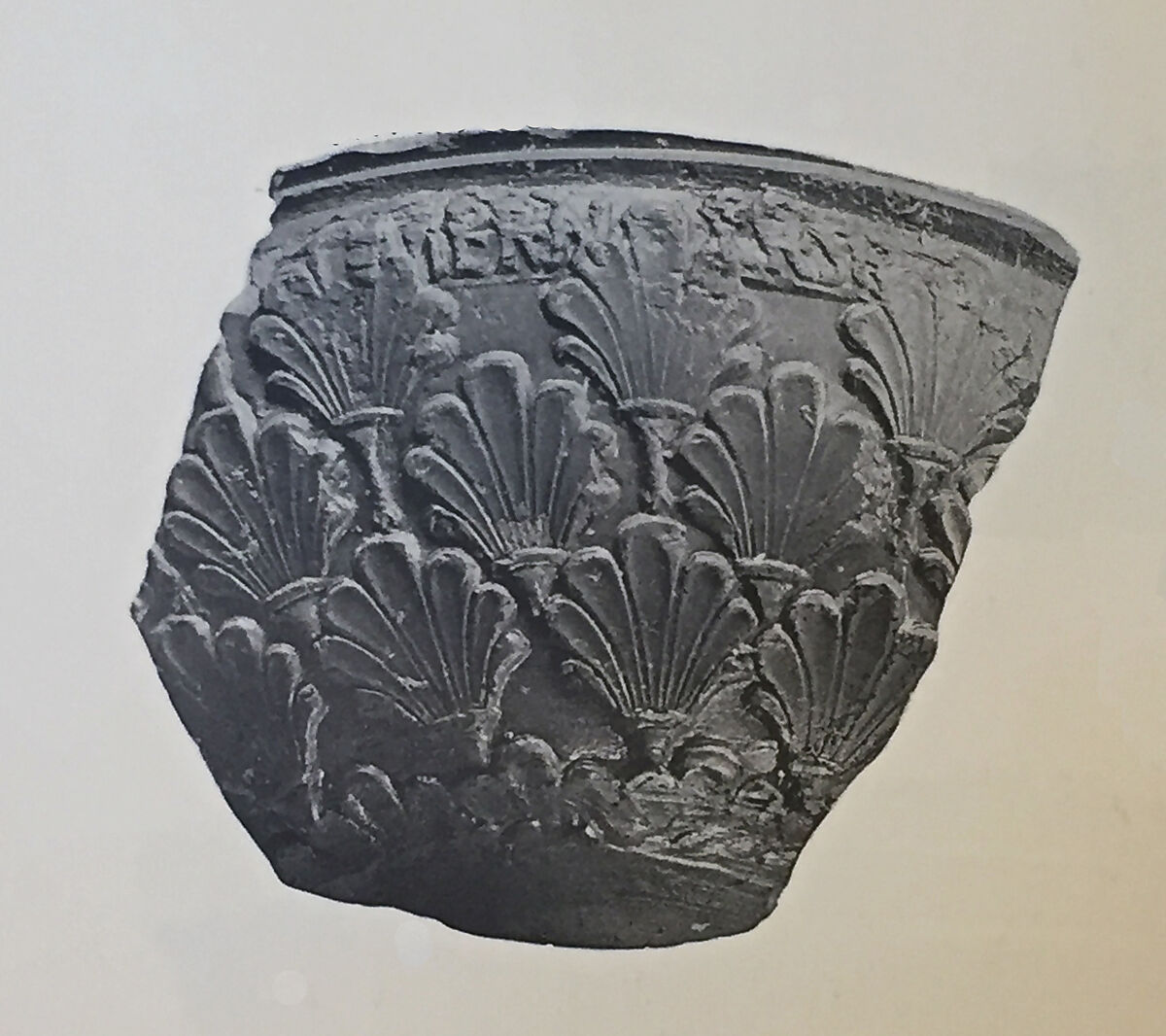 Fragment of a vase from a shallow mould, palm leaves in design. Signed by M. Perennius Crescens as owner of the pottery.