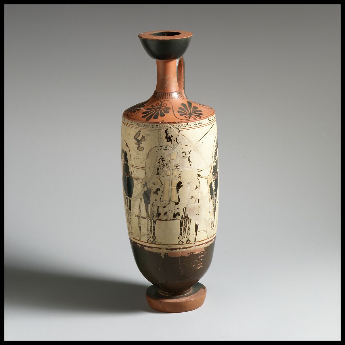 - Medium: Terracotta; black-figure, white-ground