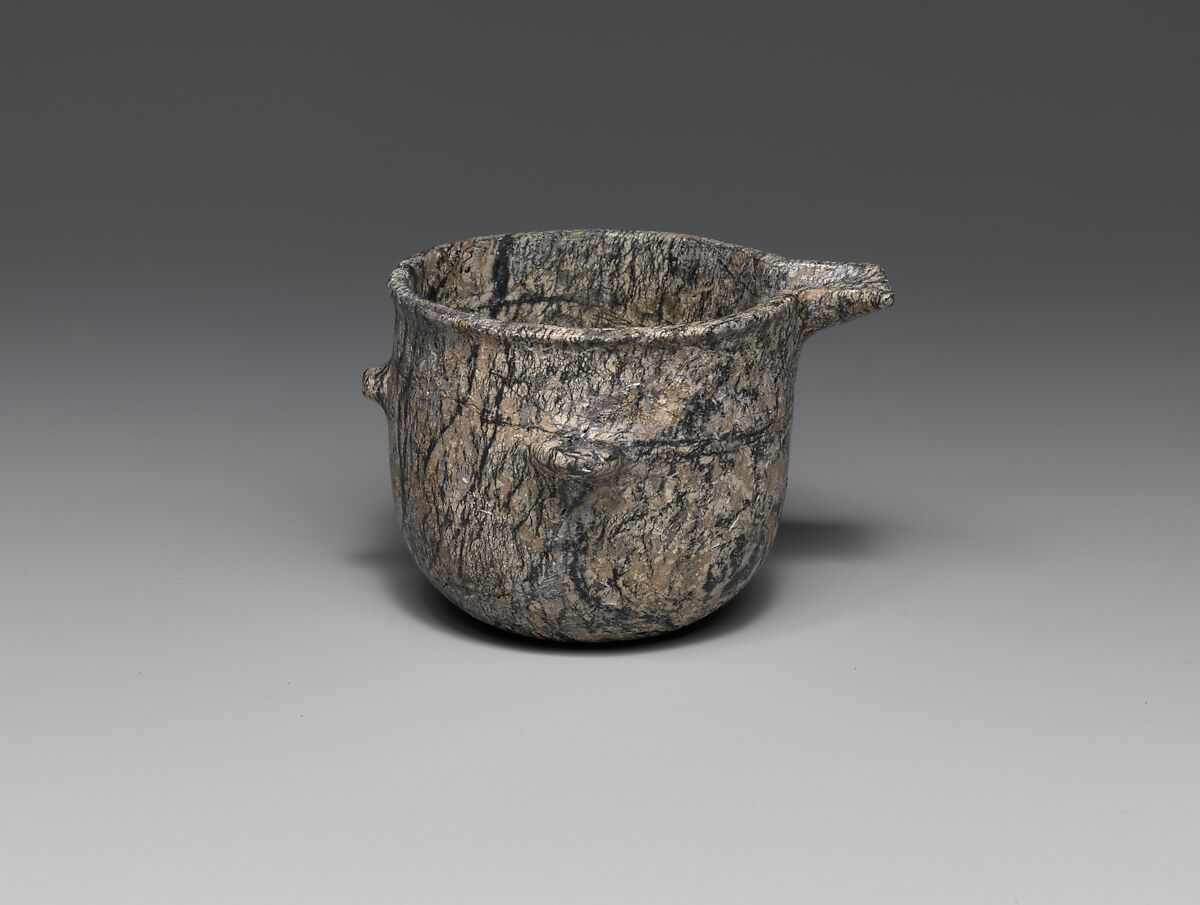 Minoan artists crafted vessels from a variety of stones using chisels, hammers, and copper-alloy saws. Finer tools like copper drills with abrasives were employed to hollow out their interiors. These vessels were durable versions of standard terracotta and metal forms, made with such high quality that they were exported throughout the Eastern Mediterranean. Stoneware has been found in settlements, cemeteries, and sanctuaries alike; the smallest examples were likely votive offerings.