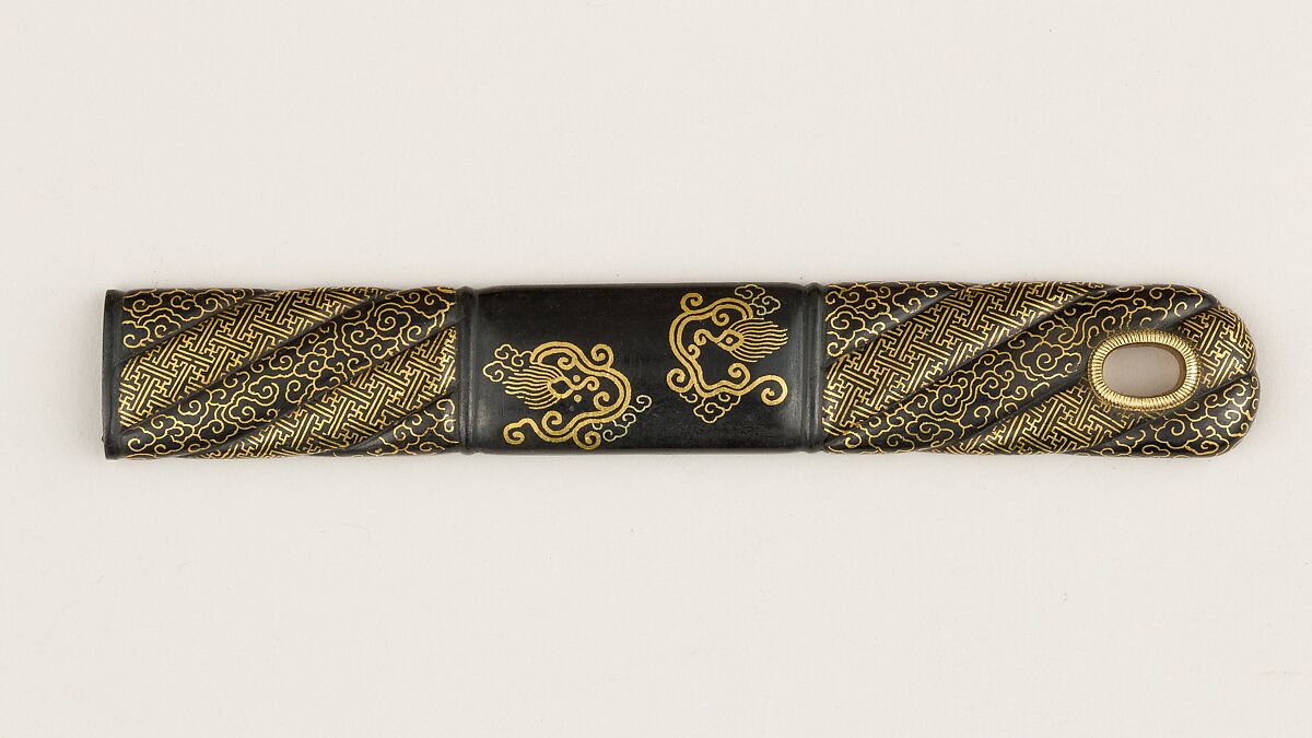 A kozuka is a handle of a by-knife that is part of a sword mounting. It is kept in a slot on the reverse of a katana scabbard, often with a matching kōgai (hairdressing tool).