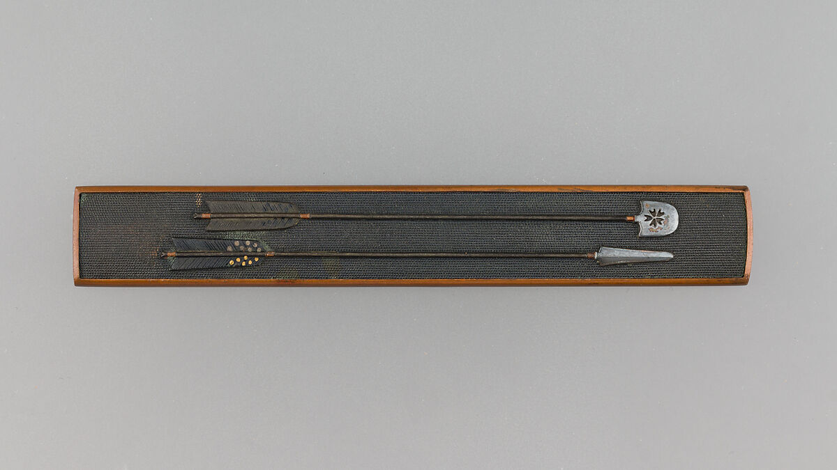 A kozuka is a handle of a by-knife that is part of a sword mounting. It is kept in a slot on the reverse of a katana scabbard, often with a matching kōgai (hairdressing tool).