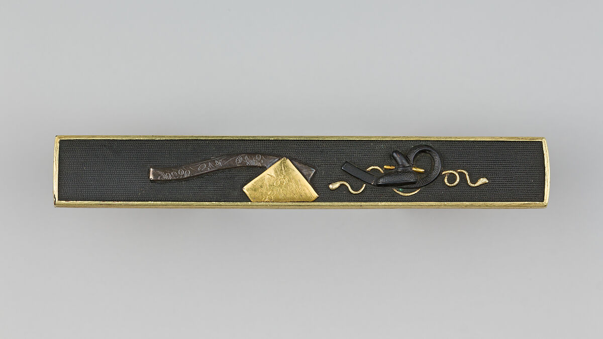 A kozuka is a handle of a by-knife that is part of a sword mounting. It is kept in a slot on the reverse of a katana scabbard, often with a matching kōgai (hairdressing tool).