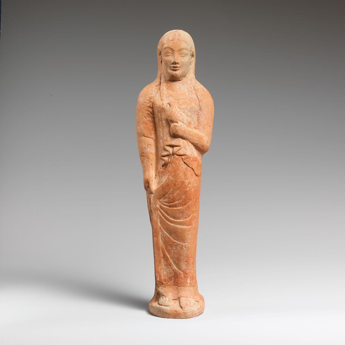 - Title: Terracotta statuette of a woman holding a bird